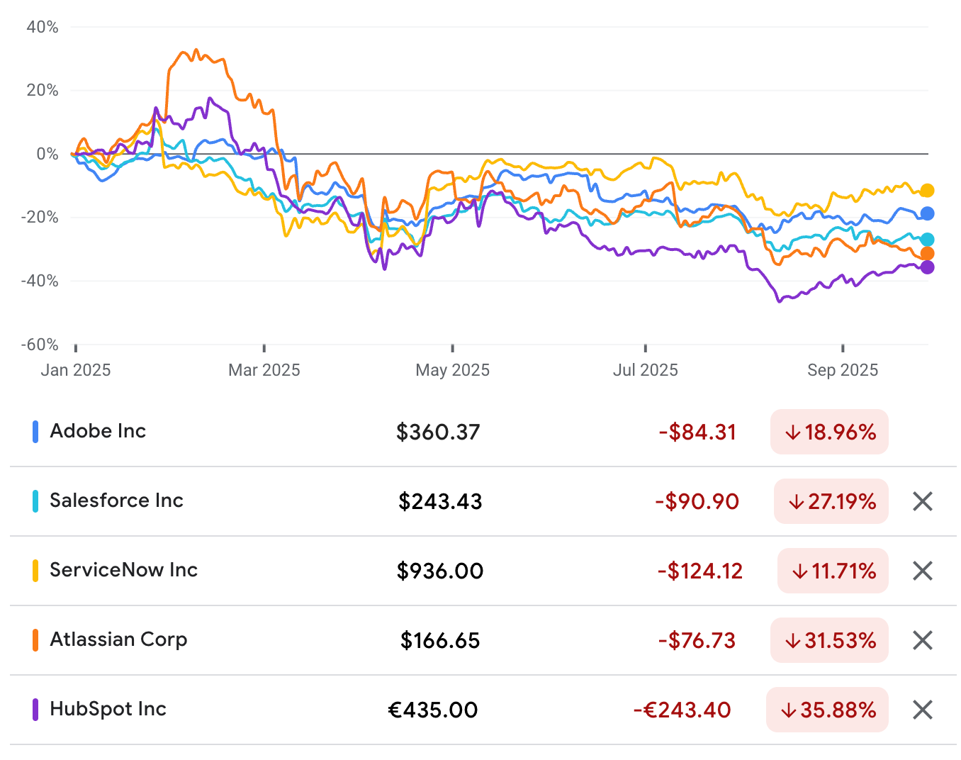 At the time of writing, the S&P 500 is at an all-time high, up 13.5% year-to-date (YTD). Not only has my list of SaaS companies underperformed the index, but they have all lost value.